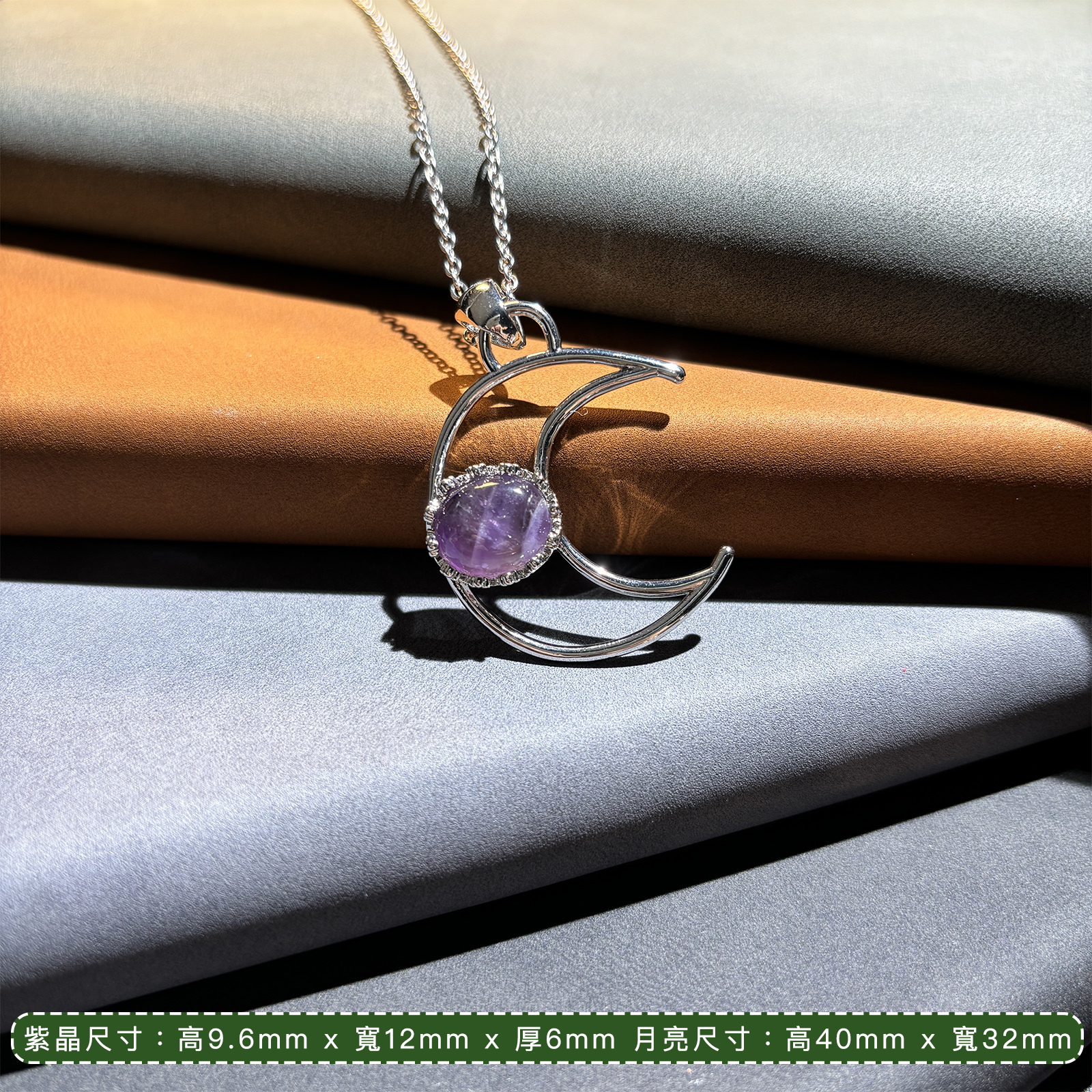 月亮女神之眼鑲嵌著紫水晶,眼裡發出代表啟發智慧的紫色光芒,幫助提升思維敏捷度,加之鏤空設計能給予更大空間感,時刻保持頭腦清晰,行事果斷迅速!