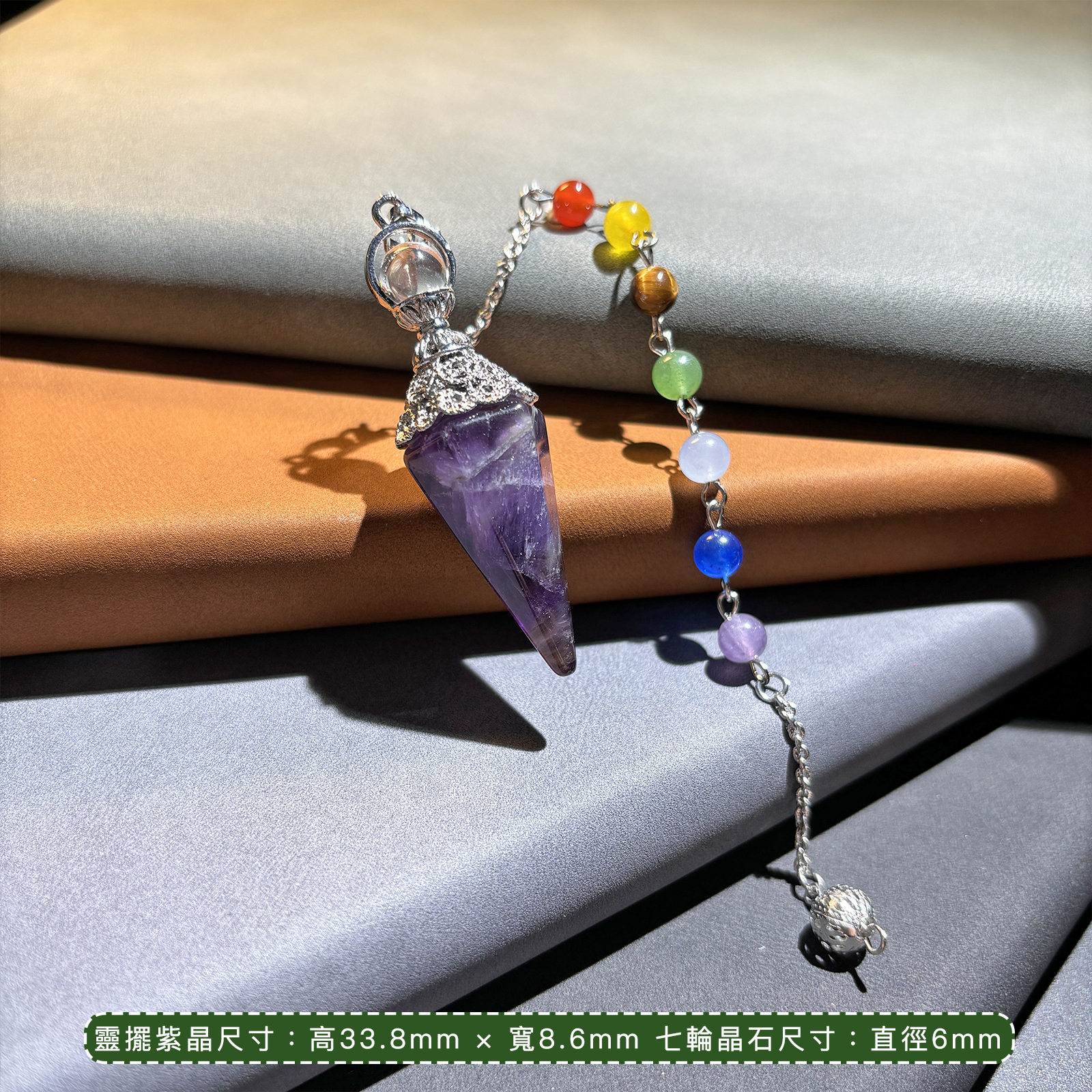 當七脈輪遇上紫晶靈擺,從頂輪開始貫穿全身能量,加倍發揮靈擺傳遞作用,協助你更容易地開發潛意識,給予自己更清晰的景象,向著目標全力加速進發!紫晶的奇妙之處在於能直通大腦電波,極致地發揮靈擺這個奇妙工具。