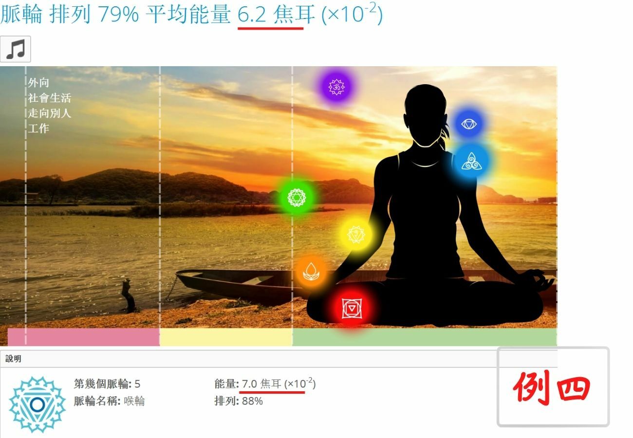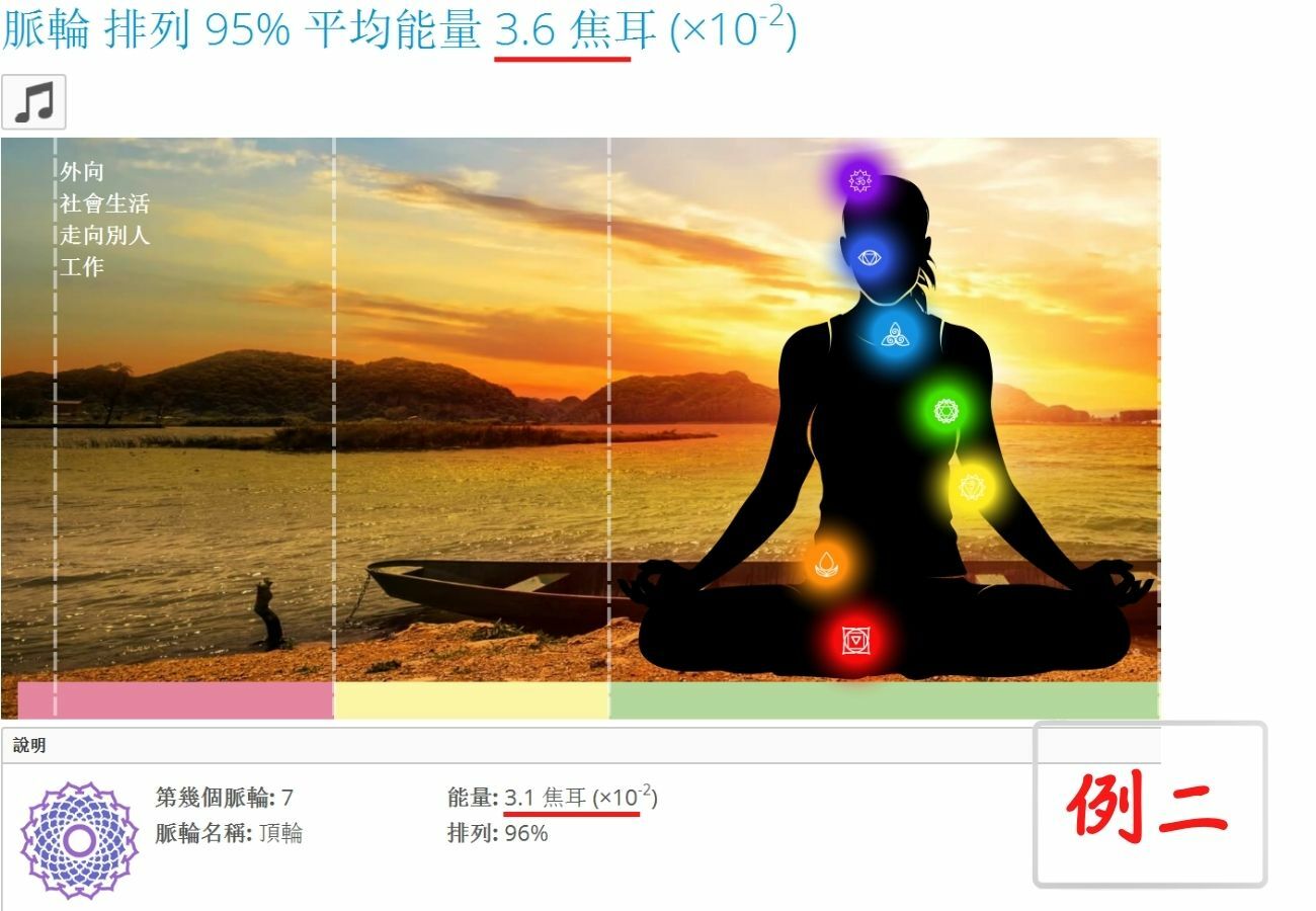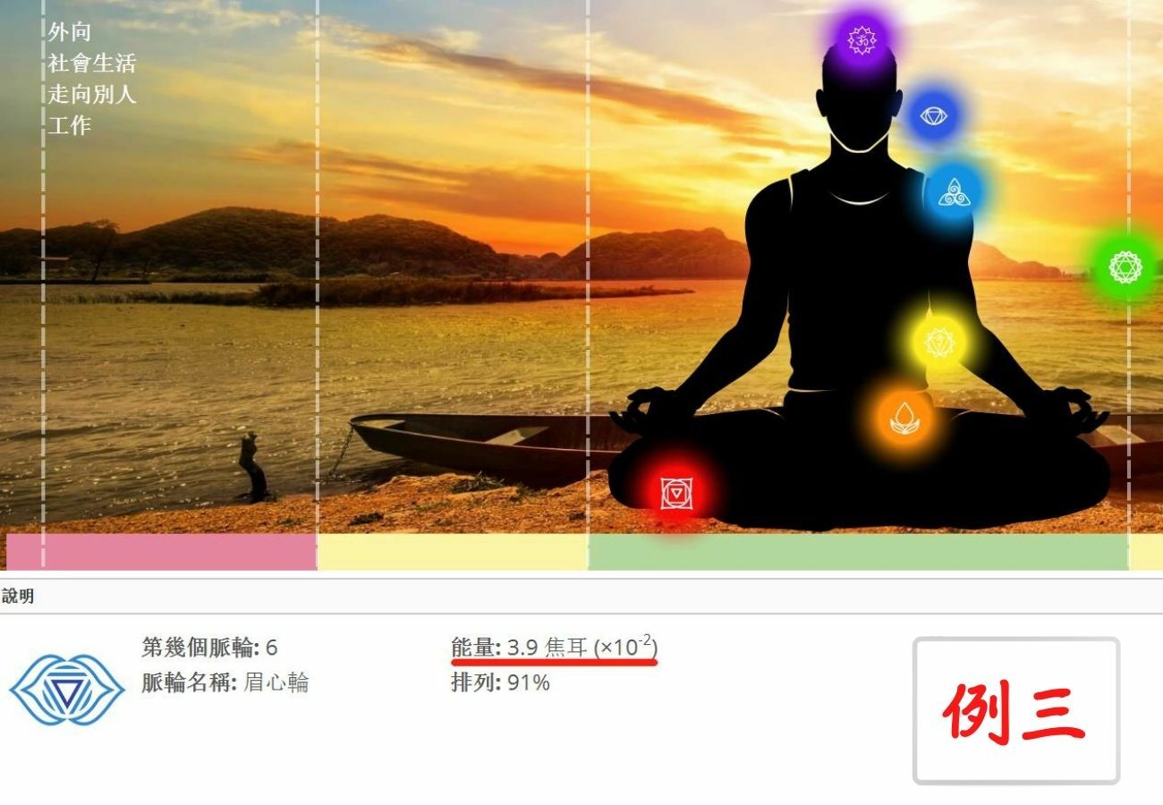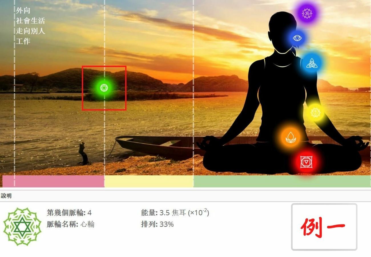 對於⼈體能量的探測和度量,⽬前⼈類還處於科學探索階段。當得出⾃⼰脈輪狀況檢測報告後,下面會根據幾個具體例子幫助你去判斷如何調整自身脈輪能量平衡以及強度情況。